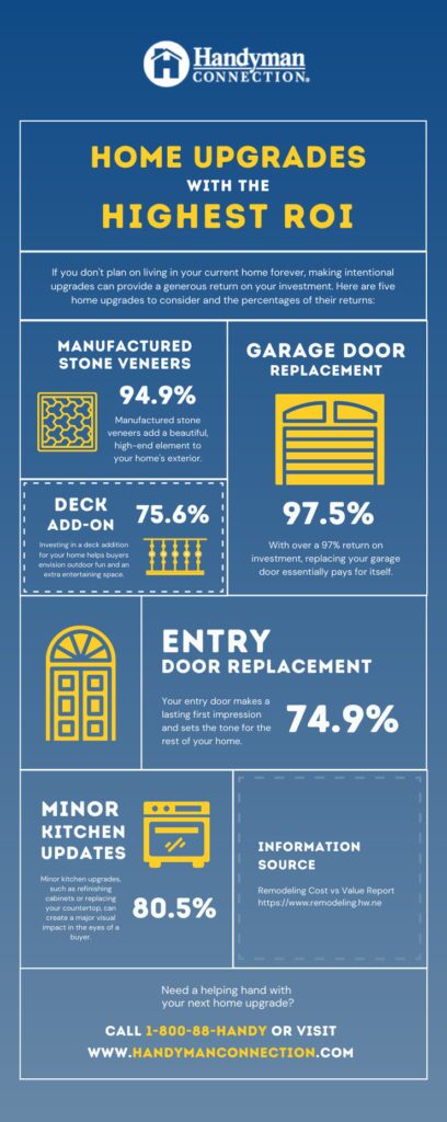 If you don’t plan on living in your current home forever, making intentional upgrades can provide a generous return on your investment. Here are five home upgrades to consider and the percentages of their return.