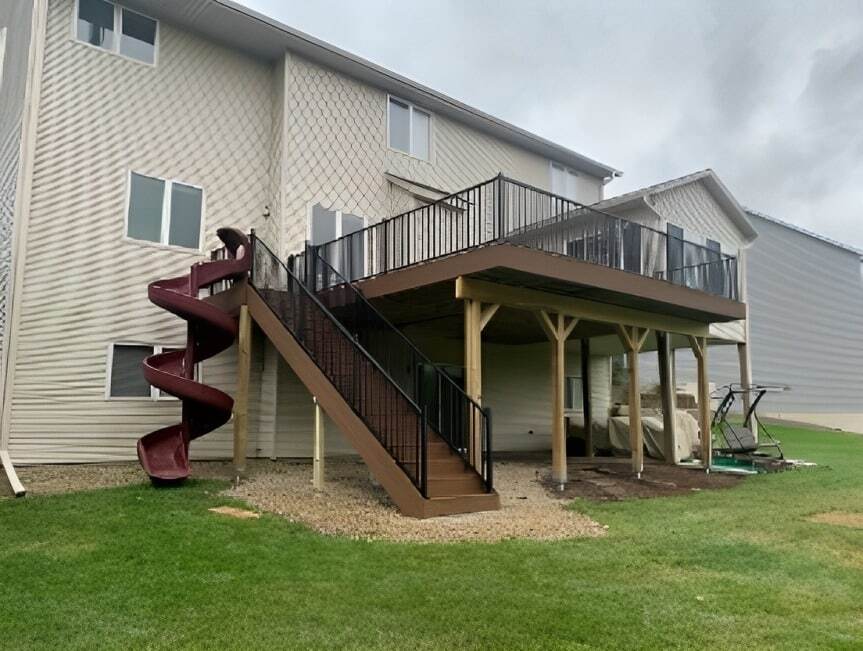 One of the wonderful projects we had the privilege to work on was building this amazing outdoor deck with the addition of an outdoor slide! We enjoy working on projects that are exciting and imaginative for everyone. If you happen to need our Deck Services, contact us today!