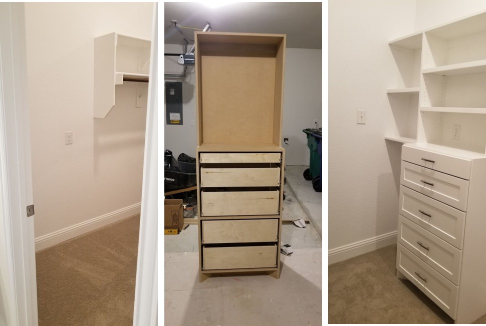 Do you need more storage place in your closet? See this carpentry and cabinet project we recently completed in McKinney. Every detail was considered to build this Hollywood style Master Closet. Have a look to the before and after pictures so you can see the final results. You need something similar in your home? Call (972) 752-6985 or fill out a form to schedule an estimate.